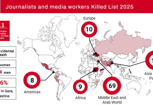One hundred and eleven journalists, including seven women, have been killed in 2025, according to the International Federation of Journalists’ (IFJ) annual report on journalists and media professionals killed in 2025. Launched ahead of Human Rights Day (10 December), the report’s findings highlight another highly lethal year for journalists and media workers – with 46% of the deaths occurring in Gaza, Palestine. Since 1990 and the launch of its annual Killed list, the IFJ has recorded 3,156 deaths worldwide, an average of 91 deaths per year, and 859 in the last ten years The IFJ has also released the list of…